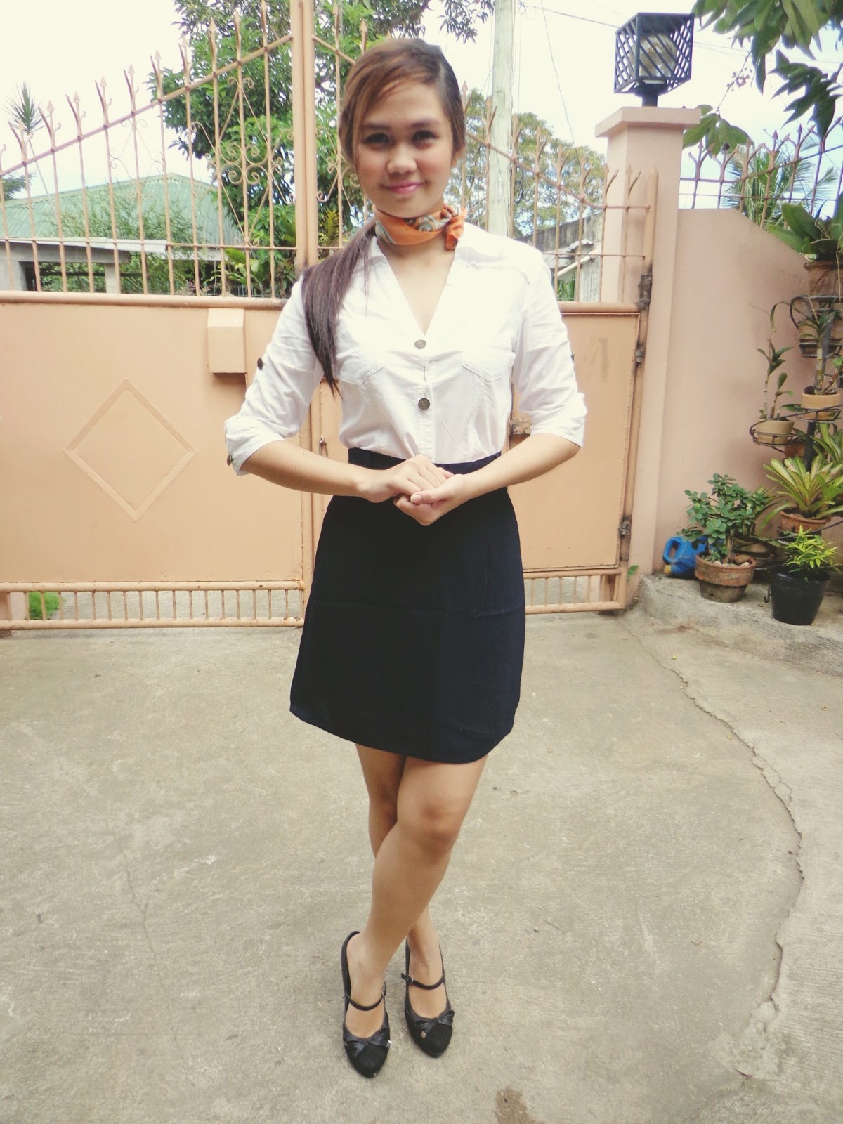 I asked my sister what can she say about my look, she said it looks like a formal attire like the ones used inside the office. On the other hand, she also said that, this can be wore during Sunday masses. And because I feel like being Pitch Perfect's Barden Bella, I added a scarf and tied it on my neck. I AM NOW PART OF BARDEN BELLAS! :"> Hahaha!. Stupid me :))
